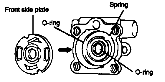1. Install the oil pump switch.2. Install the flow control valve spring, valve and connector in the pump body.