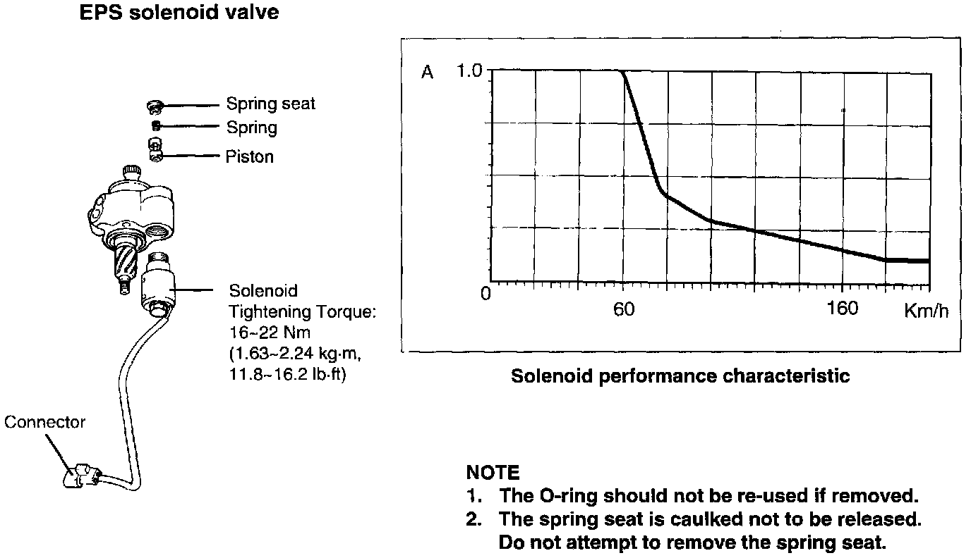 The removal and installation procedure is the same as that of conventional power steering system except the solenoid components and Electronic Power Steering System (EPS) control module.The Angular Velocity Sensor (AVS) is supplied as a multi-function switch assembly only.