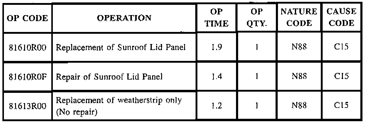 SUNROOF LID PANEL REPAIR PROCEDURE