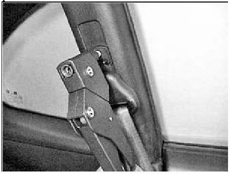 7. Reinstall the upper anchor to the 'B' pillar. Torque the mounting bolt to 30 - 40 ft.lb. (40 - 50 Nm). Verify the upper anchor rotates freely.