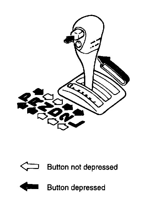 2. Check to be sure that the selector lever can be shifted to each position (by button operation as shown in the illustration).
