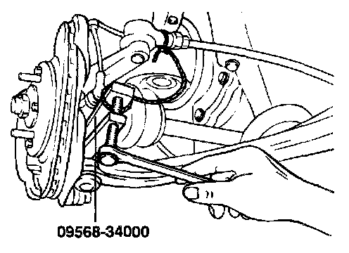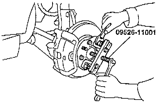 2. Using special tool (09526-11001), force the drive shaft out of the hub.