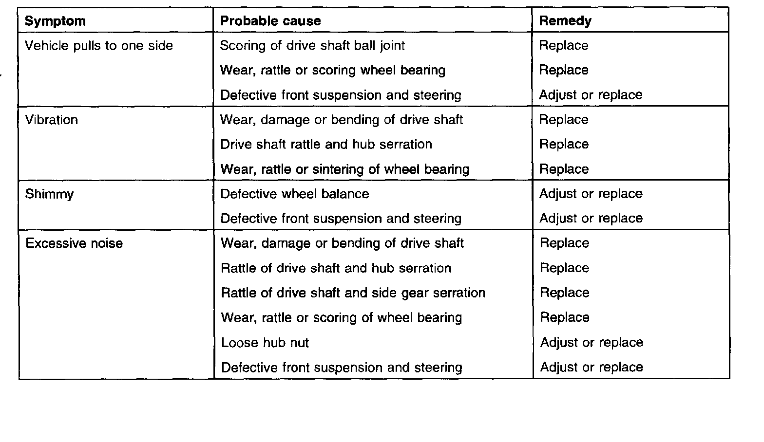 Drive Axles, Bearings and Joints