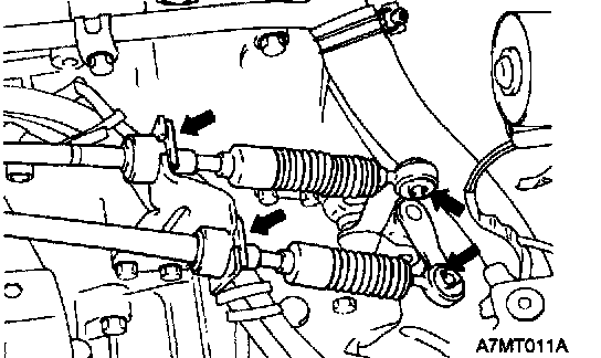 4) The flange side of the resin bushing at the shift cable end should be at the shift lever's cotter pin hole.