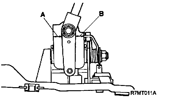 2) When connecting the select cable to lever (B), adjust the select cable's length so that lever (B) is at the neutral position.