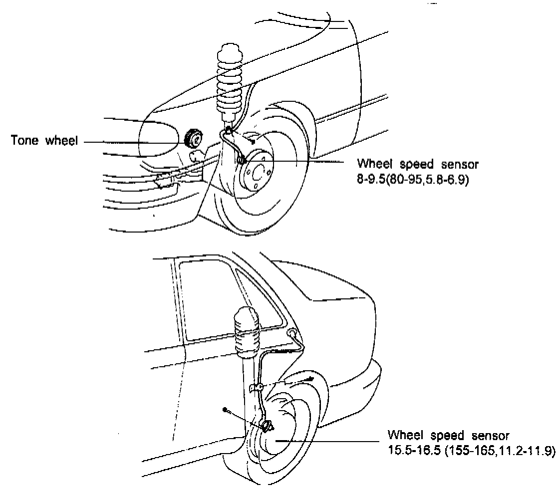 4. Remove the rear wheel speed sensor after disconnection the wheel speed sensor connector.