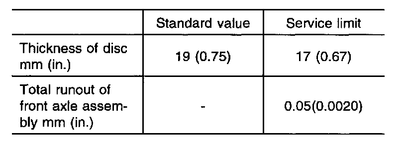 Inspect the disc using a caliper and dial gauge.