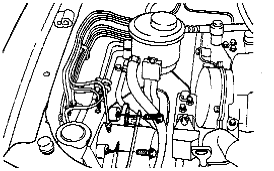 8. Remove the modulator mounting bolts and the ABS modulator from modulator mounting bracket.