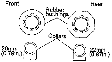 3. The front and rear center member rubber bushings and collars are different.