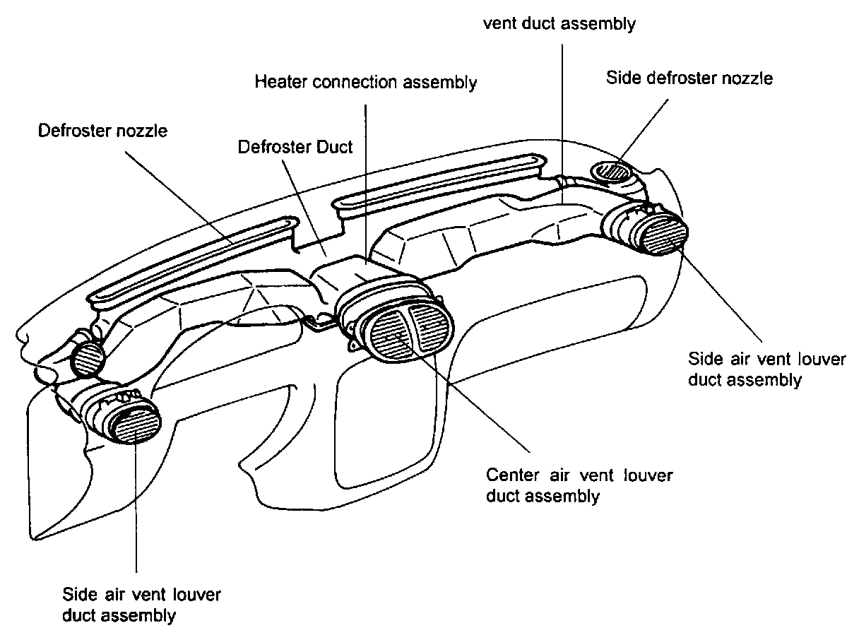 3. Detach the defroster nozzle assembly, and then the defroster hose and the side defroster nozzle.