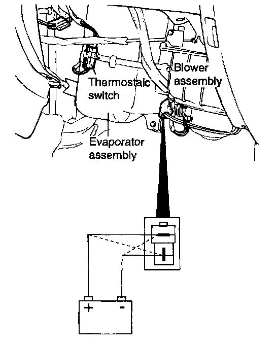 6. Connect the blower motor terminals directly to the battery and check that the blower motor operates smoothly.