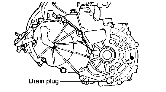 1. With the vehicle parked on a level surface, remove the drain plug and drain the transaxle oil.