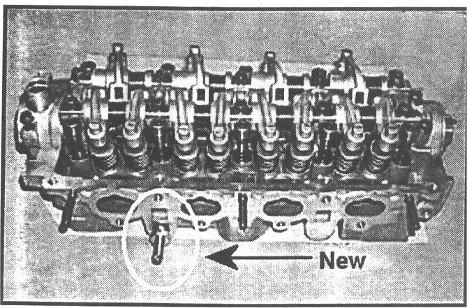 The new cylinder head has a coolant hose nipple (circled) between cylinders 3 and 4 on the intake side.