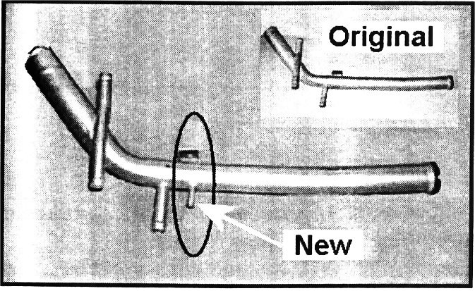 The new coolant inlet pipe has one coolant nipple added to the pipe.