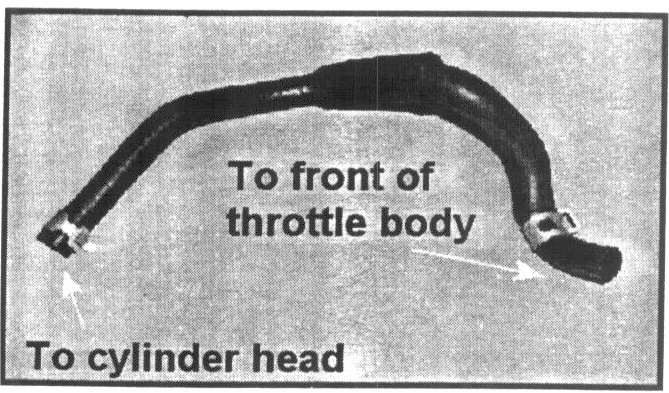 This hose connects from the cylinder head to the front nipple of the throttle body. Not required for vehicles produced through January 31, 2001.