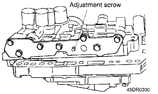 7. Turn the adjustment screw of the regulator valve and adjust so that the line pressure (kickdown brake pressure) reaches the standard value.