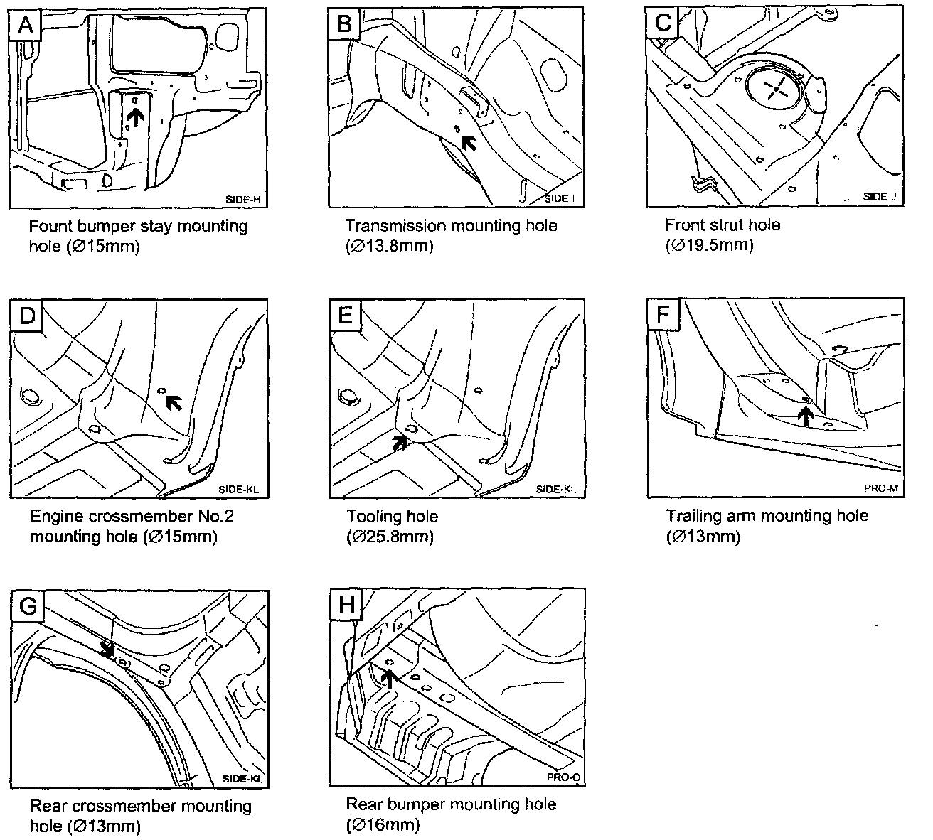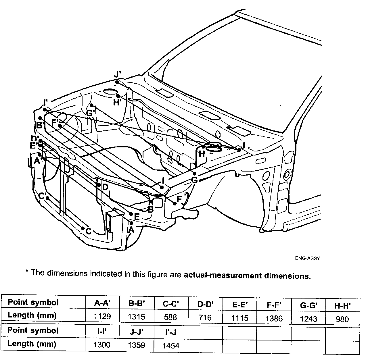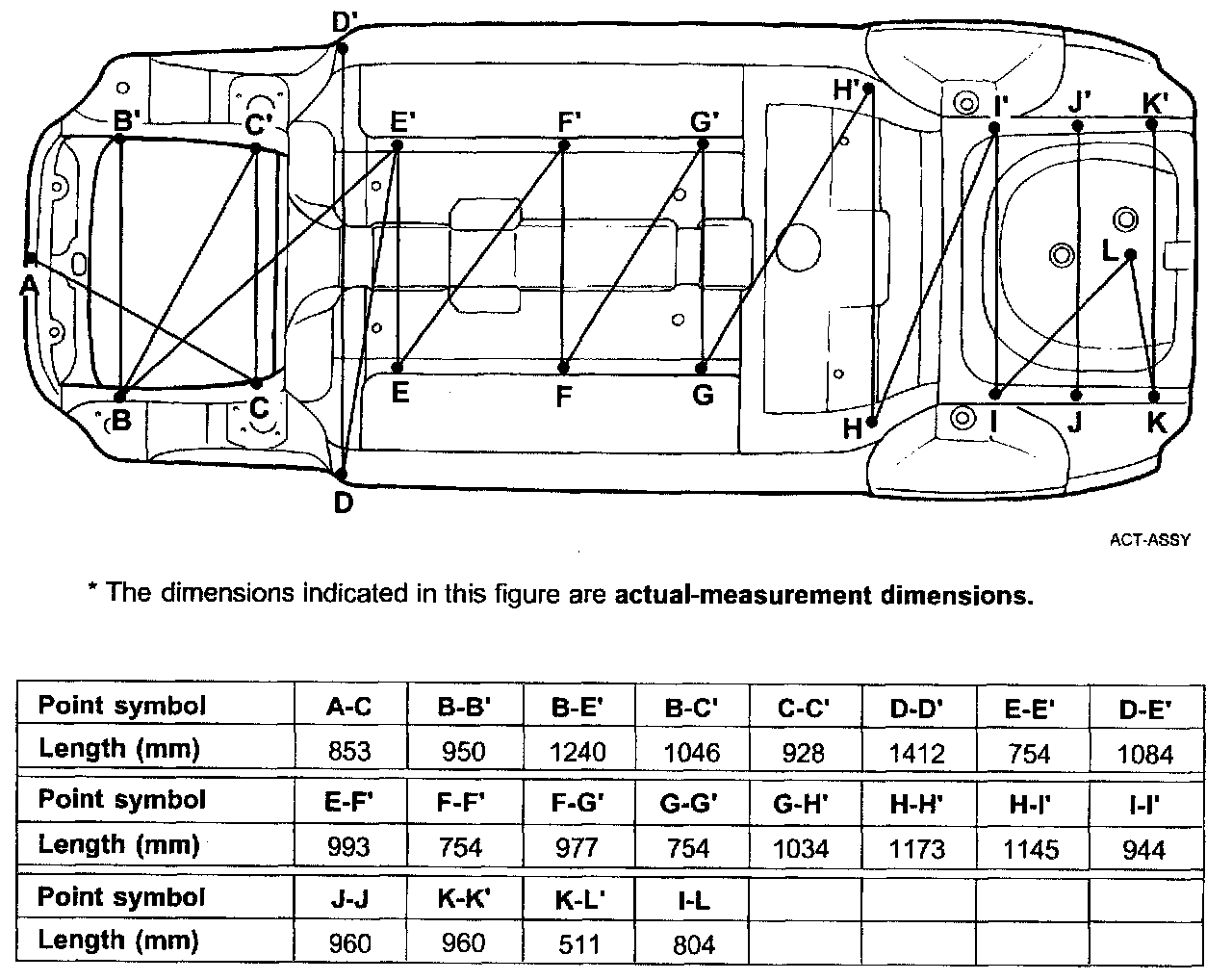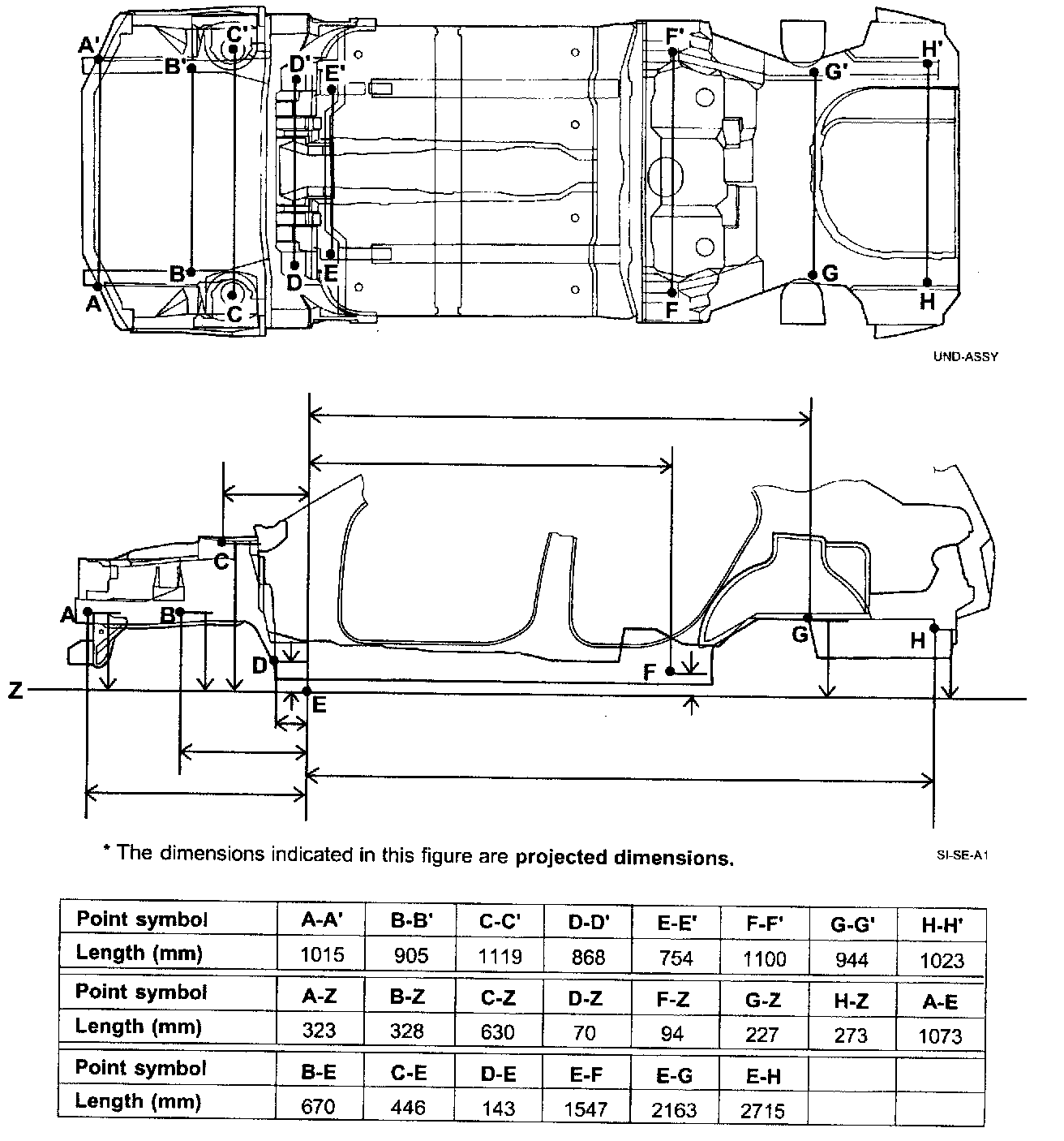 1. These are the dimensions measured when the measurement points are projected into the reference plane, and are the reference dimensions used for body alterations.