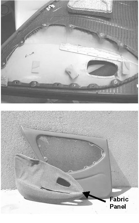 Interior door trim panel fabric repairs should only be performed by an experienced upholstery shop.