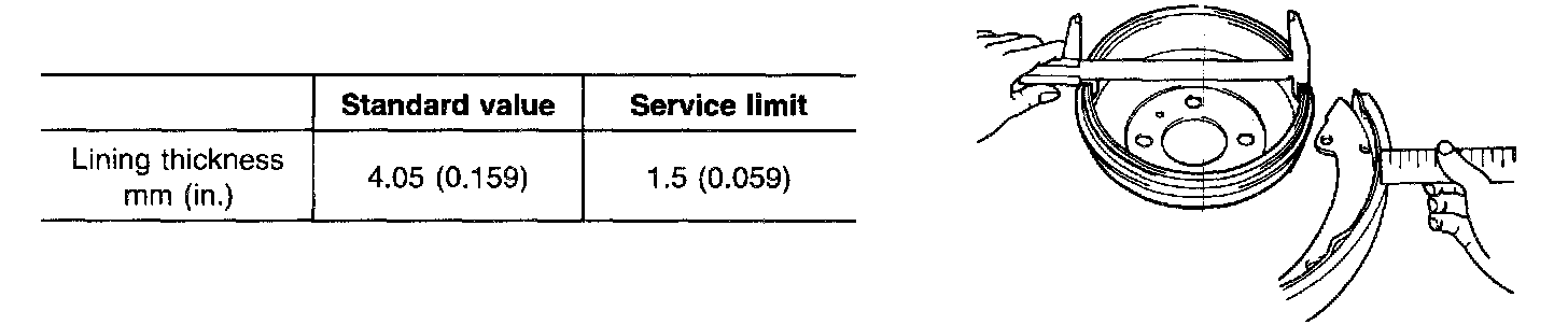 1. Measure the brake drum inside diameter. Check the runout of the brake drum using a dial indicator.