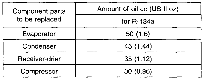 When replacing the system's component parts, be sure to add the following amount of oil to the parts being replaced.