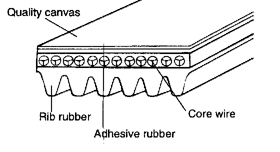 1. When installing the V-ribbed belt, check that the V ribs are properly aligned.