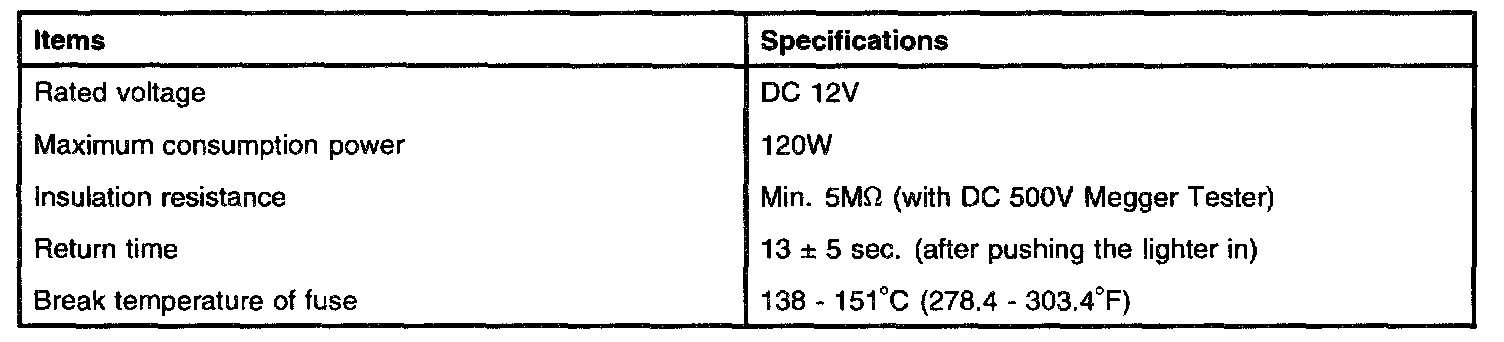 Auxiliary Power Outlet: Specifications