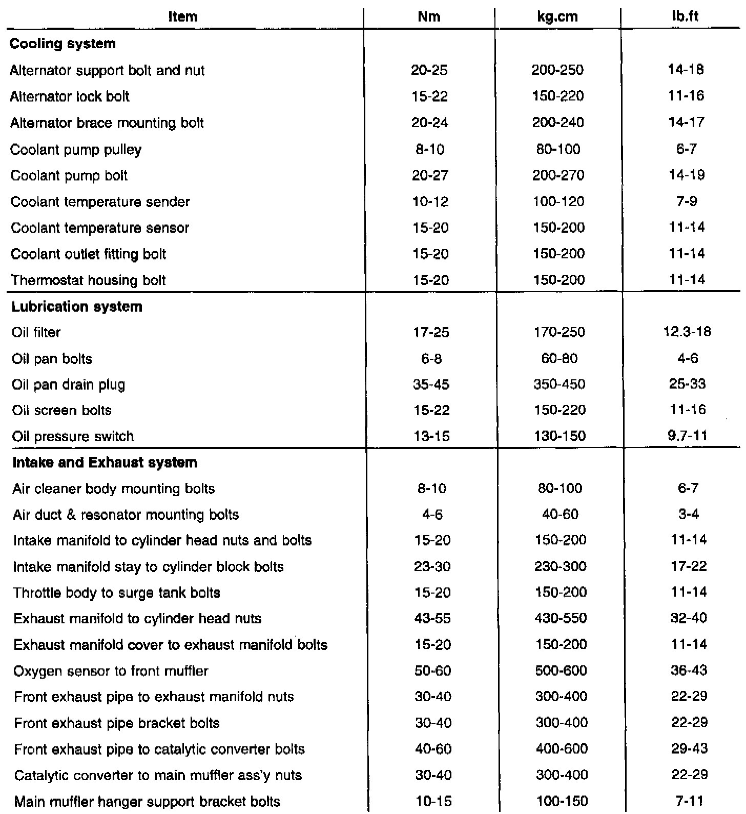 TORQUE SPECIFICATIONS