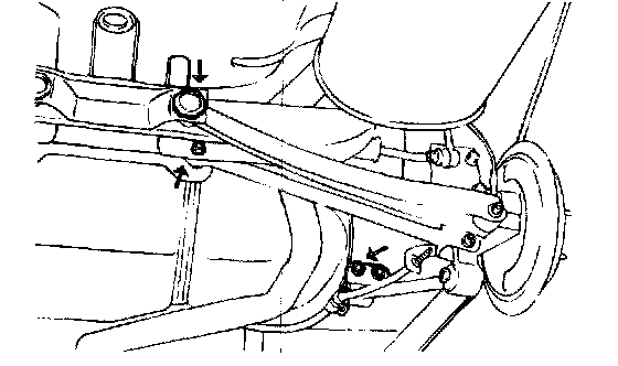 7. Remove the rear suspension arm and trailing arm mounting bolts from the rear axle carrier.
