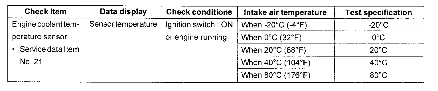 2. With temperature sensing portion of engine coolant temperature sensor immersed in hot engine coolant, check resistance.