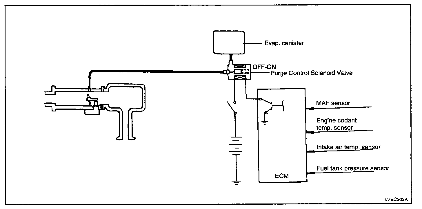 1. Disconnect the vacuum hose from the intake manifold purge hose nipple and connect a hand vacuum pump to the nipple.