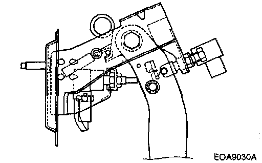 4. If the clutch pedal free play and the distance between the clutch pedal and the floor board when the clutch is disengaged do not meet with the standard values, it may be the result of either air in the hydraulic system or a faulty master cylinder of clutch. Bleed the air or disassemble and inspect the master cylinder or clutch.