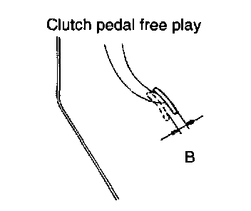 3. After completing the adjustments, check that the clutch pedal free play (measured at the face of the pedal pad) within the standard value ranges.