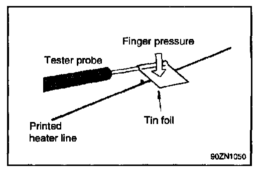 CAUTION: Wrap tin foil around the end of the voltmeter test lead to prevent damaging the heater line. Apply finger pressure on the tin foil, moving the tin foil along the grid line to check for open circuits.