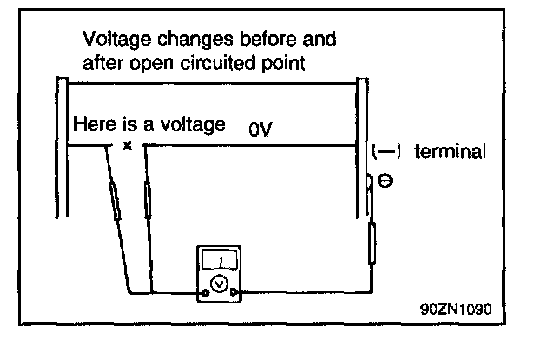 3. If a heater line is burned out between the center point and (-) terminal, the voltmeter indicates 0 volt.