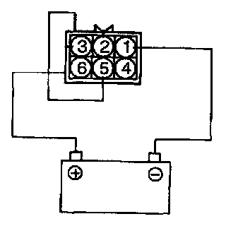4. Connect the positive (+) lead from the battery to terminal 6 and the negative (-) lead to terminal 1.