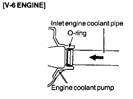 Fit O-ring in the groove provided at engine coolant inlet pipe end, wet the periphery of O-ring and inset engine coolant inlet pipe.