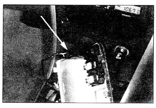 8) Remove the glovebox housing trim panel (one 10 mm nut and two screws). Make sure to leave the glovebox light switch and lamp wiring connected to ensure correct wiring orientation.