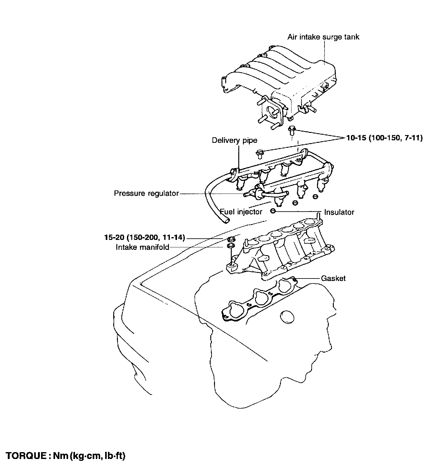 2. Remove the delivery pipe with the fuel injector and pressure regulator.