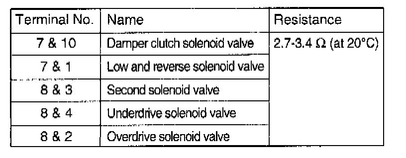 3. Measure the resistance between terminals 1 and 2 of each solenoid valve.