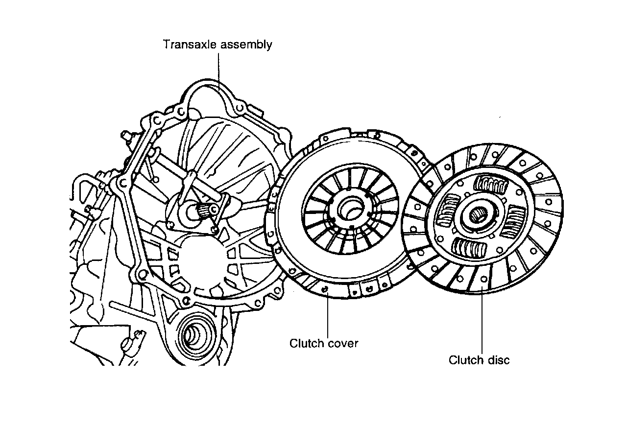NOTE: It is impossible to remove transaxle assembly without doing this step. Because, clutch cover, release bearing and release fork are combined together.