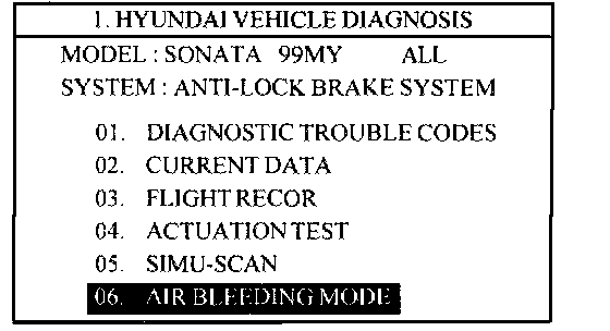 CAUTION: You have to obey maximum operating time (60sec) of ABS motor with Scan tool to prevent motor pump burnt.