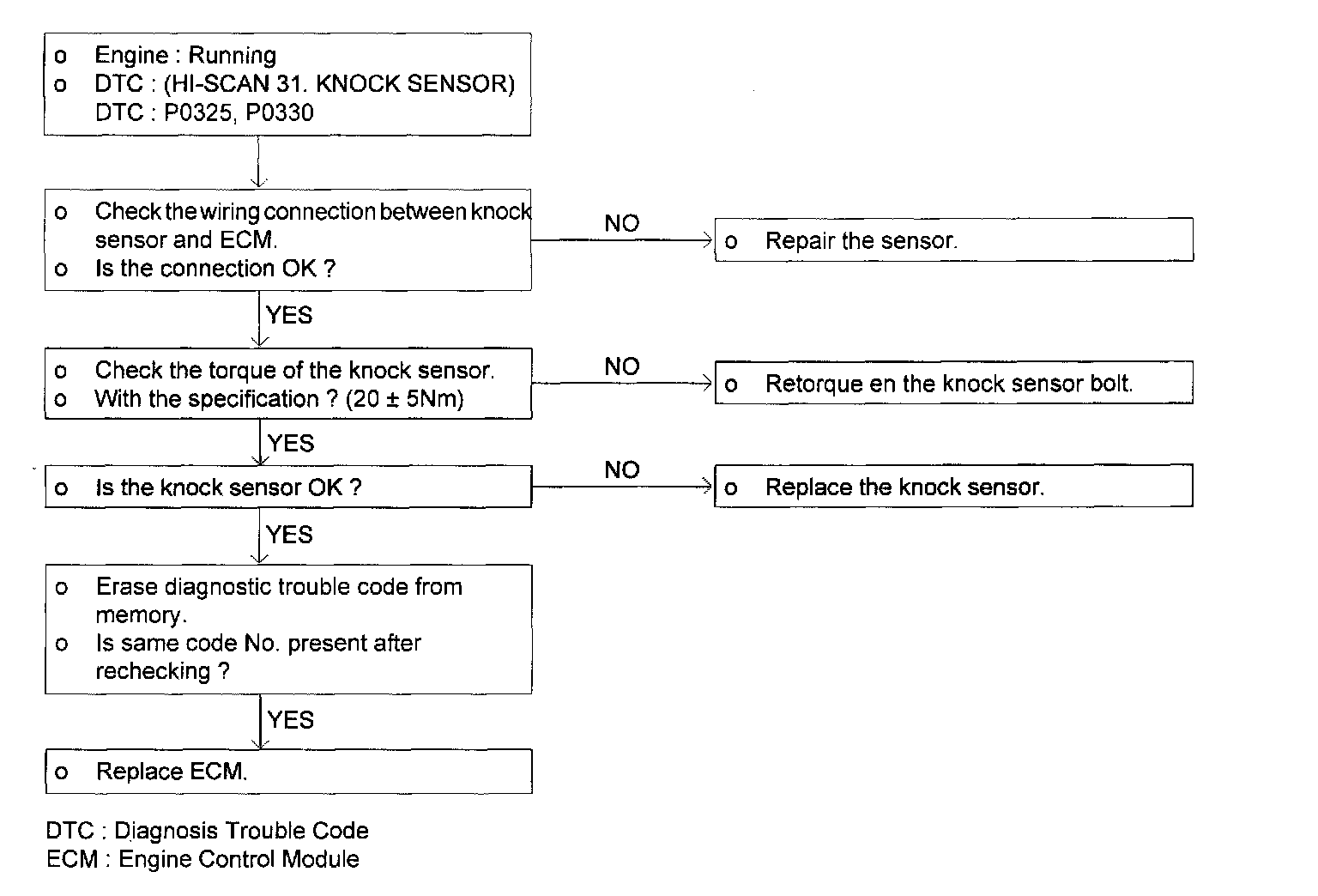 G When the knock sensor signal is not detected though the engine is in the over load condition