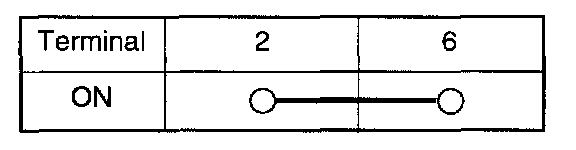 Apply battery voltage to each terminal as shown in the table and confirm that the mirror operates properly.