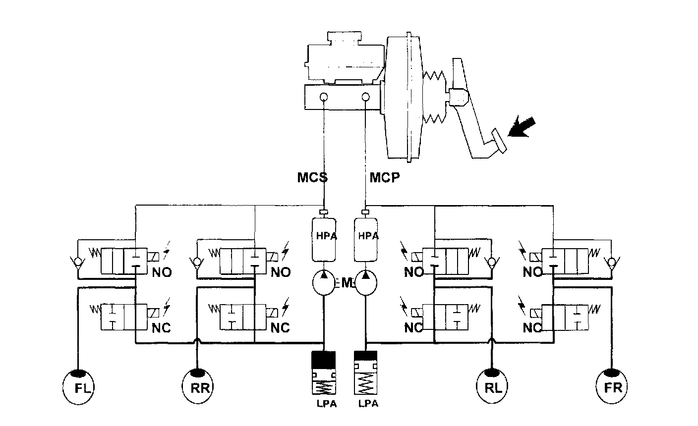 (2) Enables stopping during panic braking while allowing stability and steerability to a minimum, even on curves.