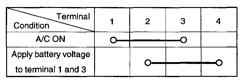 1. Check for continuity between the terminals. (After removing this relay using SST)If continuity is not as specified, replace the relay.