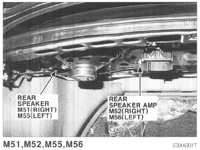 M51 (Right), M55 (Left) Rear Speaker, M52 (Right), M56 (Left) Rear Speaker Amp: