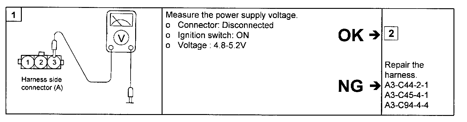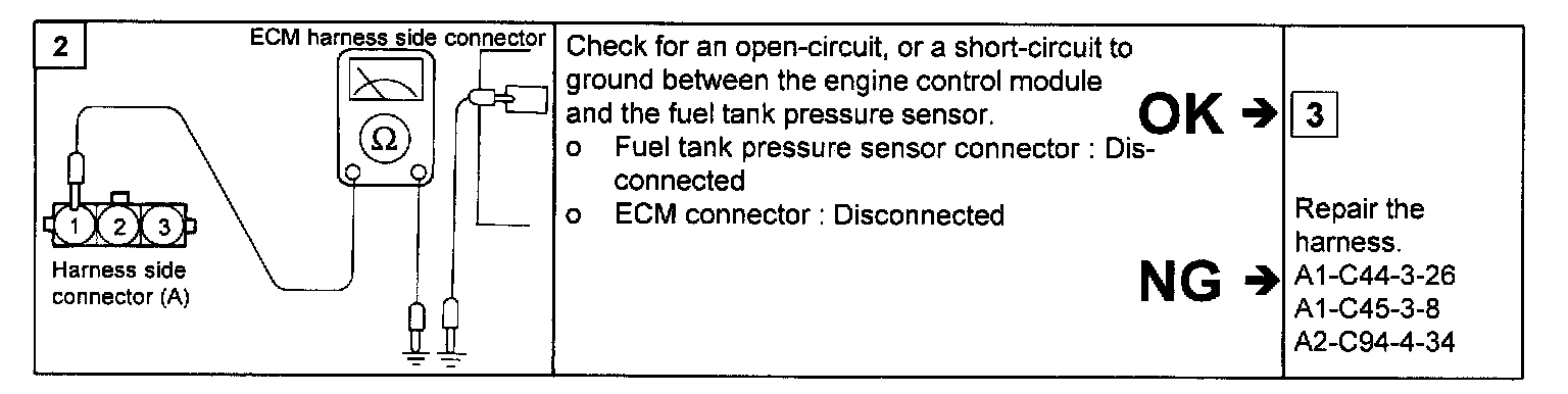 NOTE: If voltage is not within spec.as procedures, there is leakage and inspect the fuel tank and hoses toward canister and fuel neck. Then repair or replace relevant parts.