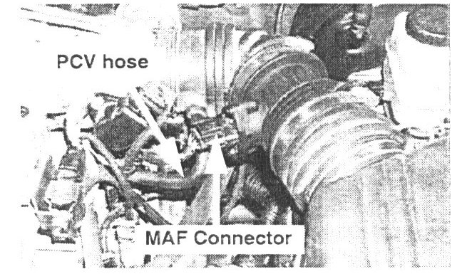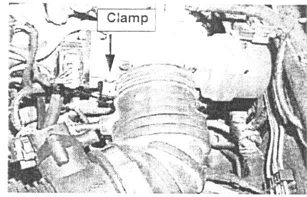 3. Loosen the air intake duct mounting clamps on the throttle body and air cleaner. Move the air intake duct out of the way on the strut.
