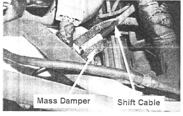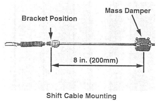 5. Attach the mass damper to the shift cable approximately 8 inches from the shift cable bracket and tighten the 4 bolts to approximately 12 lb.in securely using a hex wrench.