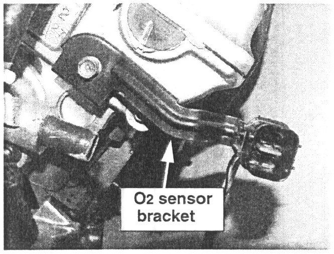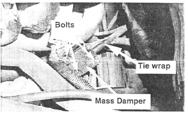 6. After installing the mass damper, use tie-wrap to secure the throttle cable to the rear 02 sensor bracket on the engine block directly above the cable to control movement of the cable.
